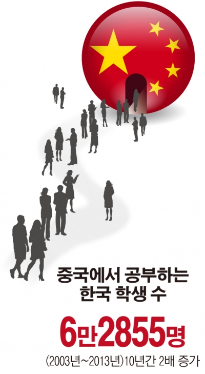 교육부에 따르면 중국에서 공부하는 한국 학생 수는 2003년부터 2012년까지 2배로 뛰어 6만2855명을 기록했다.