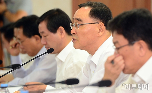 정홍원 국무총리가 5일 오전 세종로 정부서울청사에서 열린 국가정책조정회의를 주재하고 있다. 노진환 기자 myfixer@