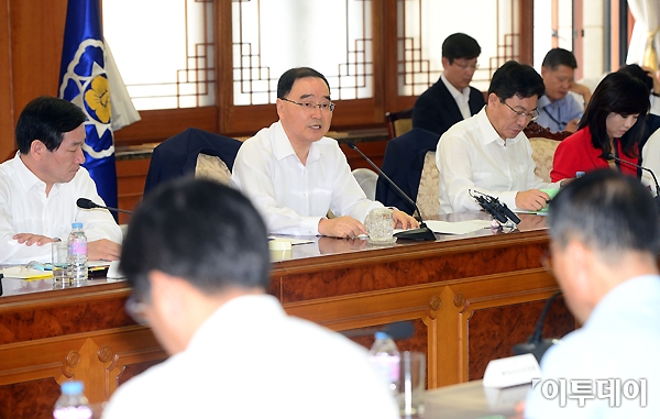 정홍원 국무총리가 5일 오전 세종로 정부서울청사에서 열린 국가정책조정회의를 주재하고 있다. 노진환 기자 myfixer@