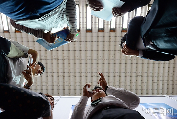 2013 동국대학교 취·창업박람회가 5일 오후 서울 동국대학교 캠퍼스에서 열렸다. 이날 오후 행사장을 찾은 재학생들이 취업상담을 받고 있다. 동국대 취업지원센터와 산학협력중심 선도대학 육성사업단이 공동으로 개최한 이번 박람회는 40여개 주요 대기업 및 중소기업이 참여하는 채용관과 자기소개서 컨설팅, 채용설명회, 현장채용 등의 프로그램이 마련됐다. 노진환 기자 myfixer@