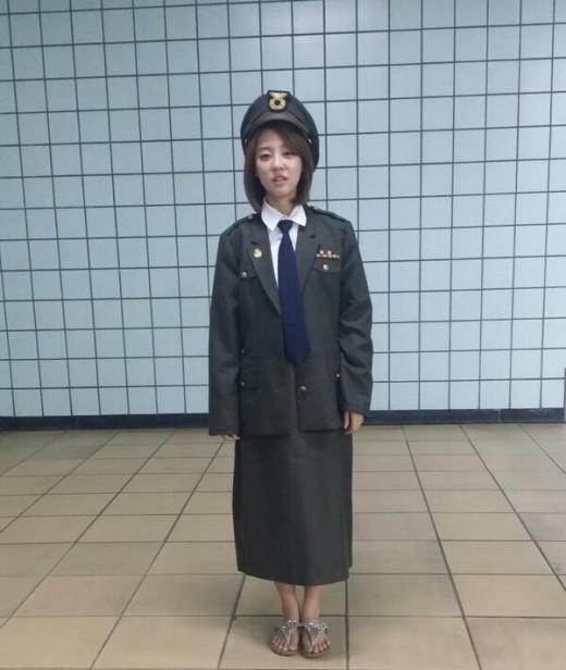 고우리가 공개한 제복사진은 너무 큰데, 이는 빌려 입은 듯한 인상을 주고 있다.