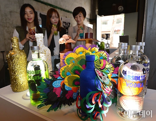 보드카 브랜드 앱솔루트가 6일 서울 성수동 대림창고에서 일반인을 대상으로 한 '너만의 앱솔루트를 만들어 줄 것' 아트공모전 우수작 50점을 전시하고 있다.'Create Your Own ABSOLUT' 캠페인의 일환으로 진행된 이번 공모전은 앱솔루트 아이코닉 보틀을 빈 캔버스로 삼아 자신만의 상상력과 독창성을 채우는 방식으로 진행됐다. 양지웅 기자 yangdoo@