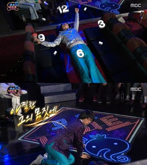 이후 보아가 "노래 춤 랩 중에 가장 자신있는 것이 무엇이냐"고 묻자 유재석은 "춤"이라고 답했고, 이어 지드래곤이 "끈적한 춤도 가능하냐"고 묻자 즉석에서 춤을 추기 시작했다.