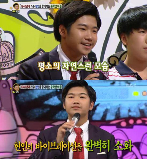 지난 2일 방송된 KBS2 ‘대국민 토크쇼-안녕하세요’에는 1940년대 가수 현인이나 옛 가수들에 푹 빠져있는 아들의 사연이 공개됐다.