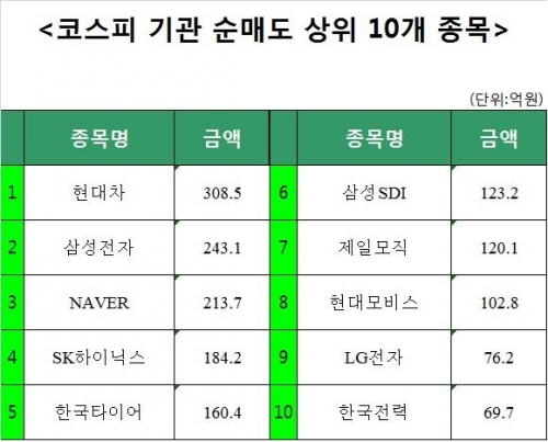 [코스피 기관 순매도 상위 10개 종목]