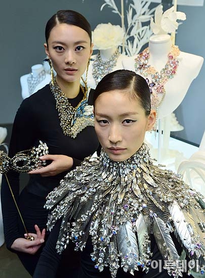 크리스털 브랜드 스와로브스키가 10일 서울 강남구 신사동 호림아트센터에서 동시대를 대표하는 디자이너와의 콜라보레이션을 통해 탄생한 다양한 주얼리를 선보이고 있다. 방인권 기자 bink7119@