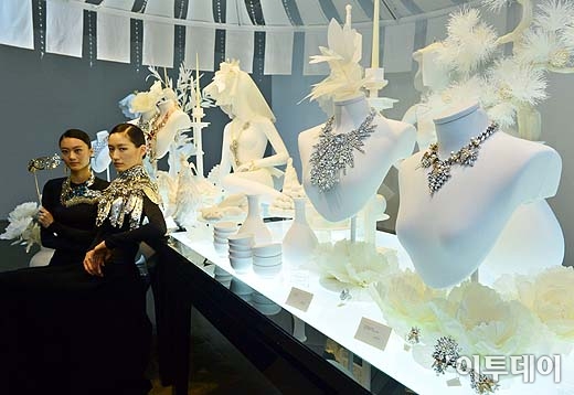 크리스털 브랜드 스와로브스키가 10일 서울 강남구 신사동 호림아트센터에서 동시대를 대표하는 디자이너와의 콜라보레이션을 통해 탄생한 다양한 주얼리를 선보이고 있다. 방인권 기자 bink7119@