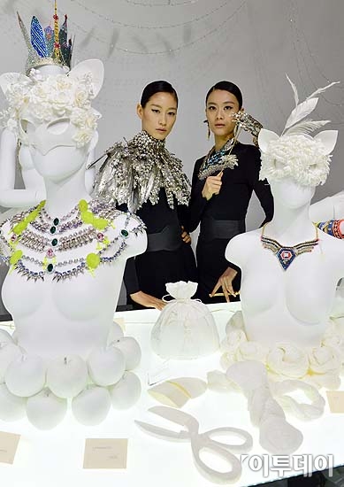 크리스털 브랜드 스와로브스키가 10일 서울 강남구 신사동 호림아트센터에서 동시대를 대표하는 디자이너와의 콜라보레이션을 통해 탄생한 다양한 주얼리를 선보이고 있다. 방인권 기자 bink7119@