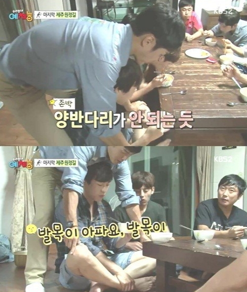 이날 '우리동네 예체능'은 배드민턴 마지막 대결이 펼쳐졌다. 제주도로 원정 경기를 떠난 강호동 이만기 조달환 이지훈 존박 이종수 최강창민 찬성 필독 이수근은 진지한 태도로 경기에 임해 눈길을 끌었다. 특히 존박은 양반다리 굴욕을 당해 웃음을 주기도 했다.