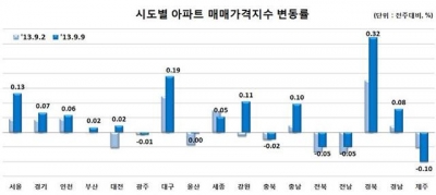 시도별로는 △경북(0.32%) △대구(0.19%) △서울(0.13%) △강원(0.11%) △충남(0.10%) △경남(0.08%) 등의 순으로 올랐다.