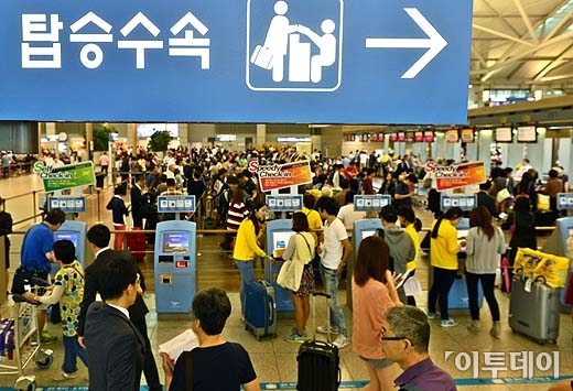 추석연휴를 앞둔 13일 오전 인천국제공항 출국장이 해외로 나가는 사람들로 붐비고 있다. 이번 추석연휴는 휴일과 주말을 더해 최장 9일까지 쉴 수 있는 황금연휴다. 방인권 기자 bink7119@