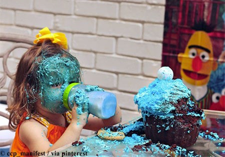 공개된 '케이크와 싸운 소녀' 사진 속에는 파란색 케이크 크림을 뒤집어 쓴 한 소녀의 모습이 담겨 있다. 케이크와 싸운 소녀는 초코케이크에 얹어있는 파란색 크림을 얼굴 전체에 뒤집어 쓰고 아무렇지 않게 우유병을 물고 있어 웃음을 자아낸다.