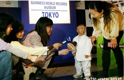 공개된 '세상에서 가장 작은 사람'의 주인공은 올해 19살인 히핑핑 씨로 그의 키는 겨우 73cm에 불과하다. 그는 지난 2007년 세계 기네스북 협회로부터 '세계에서 가장 작은 남성' 으로 인정받았다.