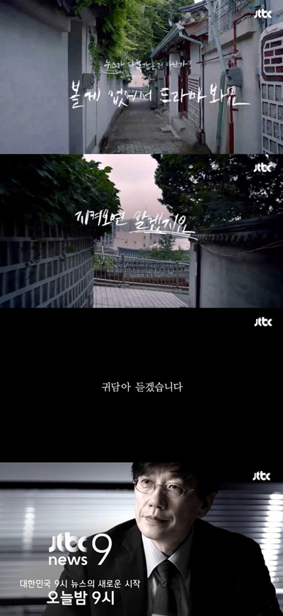 앞서 JTBC는 지난 4일 첫 티저 영상 '우린 볼 겁니다' 편, 9일 두 번째 영상 '새롭게 시작합니다' 편을 발표했다. 두 영상은 동영상 사이트 유튜브에서 현재까지 각각 조회수 2만5000여건, 13만여건을 기록하며 화제를 모으고 있다.