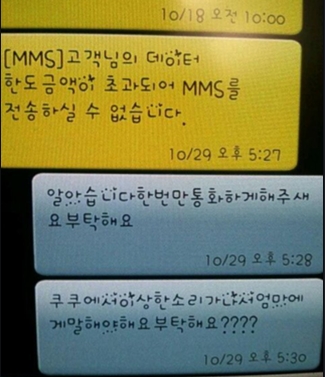 사진 속에는 통신 회사에서 데이터 용량이 초과돼 통화를 할 수 없는 내용의 문자메시지를 수신한 조카가 통신회사에 전화 통화를 할수 있게 해 달라고 사정하는 내용의 문자가 담겨있다.