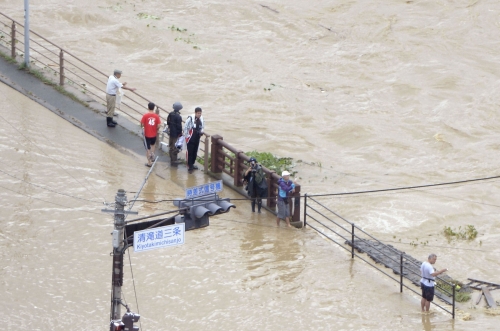 일본 기상청은 이날 오전 5시께 호우 특별 경보를 내리고 일부 지역에 주민 대피주의보를 발령했다. 특별경보는 호우, 지진, 쓰나미 등의 심각한 피해 예상시 발령되며 재난 상황에서 내리는 '경보'보다 수위가 높다.