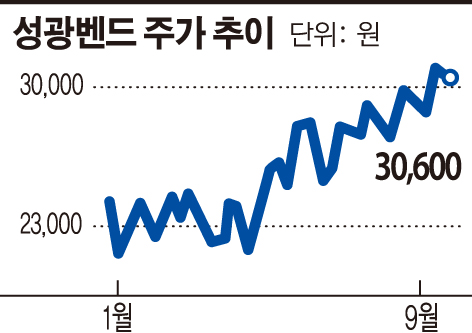 금융감독원 전자공시시스템에 따르면 신홍일 성광벤드 상무는 보유주식 1000주 전량을 매각했다. 처분단가는 주당 3만950원으로 지난 12일 장중에 찍은 3만1400원에 상당히 근접한 가격이다. 종가기준 최고치는 3만900원인데 공교롭게도 신 상무의 주식 매각일이다.