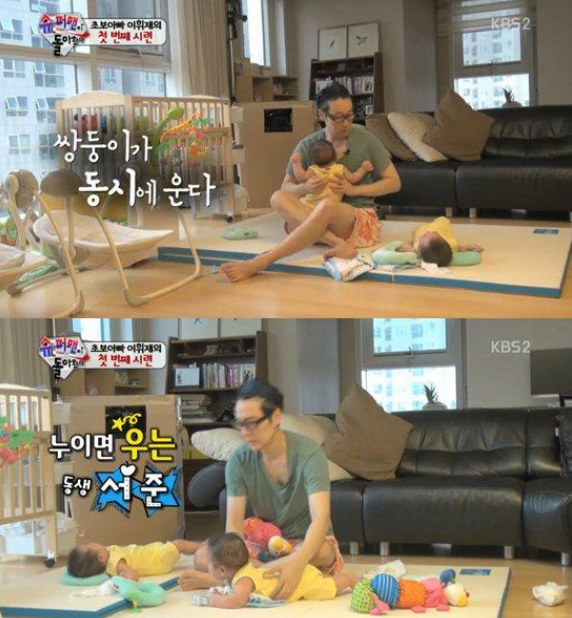 이휘재는 19일 오후 방송된 KBS 2TV 파일럿 프로그램 ‘슈퍼맨이 돌아왔다’에서 혼자서 쌍둥이를 볼보는 모습이 그려졌다.