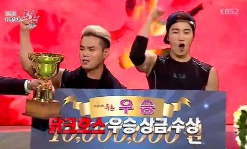 비보이김헌우는 가수 이정과 함께 '닭크호스' 팀으로 출전해 2부에서 개그맨 윤형빈과 종합격투기 선수 허윤이 이끄는 '붉은 수탉'팀과의 결승 끝에 우승을 차지, 1000만원 상금의 주인공이 됐다.