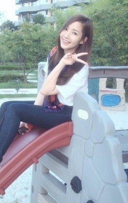 박민영은 21일 자신의 트위터를 통해 "Good Morning"이란 짧은 글과 함께 사진 한 장을 게재했다, 공개된 사진에는 박민영이 미끄럼틀 위에 앉아 손가락으로 브이 표시를 하고 있는 모습이 담겨있다.