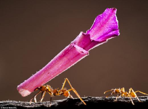 앞서 사진작가 벤스 메이트는 현재 영국에서 열리고 있는 ‘ZSL 동물사진 경연대회’에 꽃잎 옮기는 가위개미 사진을 출품, 성인부문 우승을 차지했다.