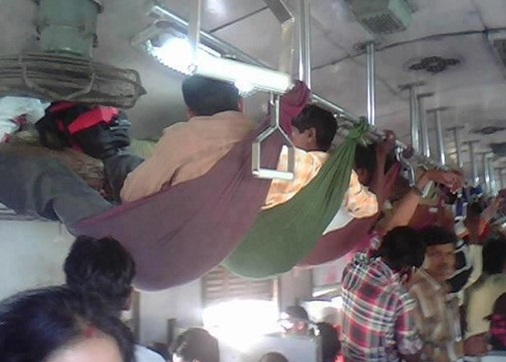공개된 '무서운 공중 침대 2탄' 사진에는 기차 천장에 해먹을 매달아 그 위에 올라탄 사람들의 모습이 담겨있다. 좁은 기차 내부에서 편하게 갈 수 있는 방법이긴 하지만 그 모습은 우스꽝스러워 보인다.