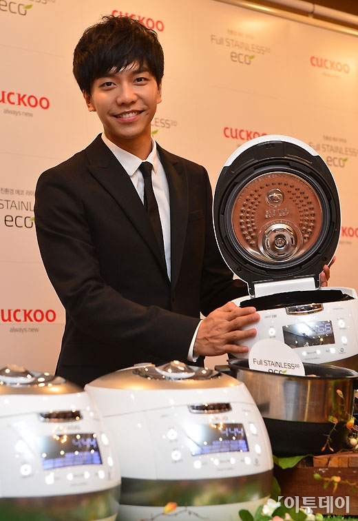 쿠쿠전자가 24일 서울 중구 플라자 호텔에서 신제품 ‘쿠쿠 풀스테인리스 2.0 에코'를 선보였다. 이날 행사에서 신제품의 모델로 발탁된 가수 겸 배우 이승기가 포즈를 취하고 있다. 신제품 밥솥인 '풀스테인리스 2.0 에코'는 위생과 건강에 좋은 친환경 소재인 스테인리스를 국내 최초로 뚜껑에서부터 내솥과 케이스 외 증기가 닿는 모든 부분에 적용한 '풀(Full)스테인리스' 제품으로, 내구성이 강하고 세척하기 쉬워 위생적으로 사용이 가능해 건강한 밥맛을 즐길 수 있다. 양지웅 기자 yangdoo@