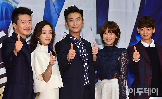 MBC 수목미니시리즈 '메디컬 탑팀' 제작발표회가 24일 서울 신촌세브란스병원에서 열렸다. 배우 권상우, 려원, 주지훈, 오연서, 민호가 이날 행사에 참석해 포즈를 취하고 있다. 양지웅 기자 yangdoo@