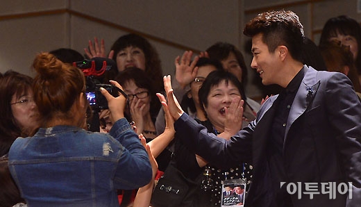 MBC 수목미니시리즈 '메디컬 탑팀' 제작발표회가 24일 서울 신촌세브란스병원에서 열렸다. 이날 행사에 권상우가 해외 팬들과 인사를 나누고 있다. 양지웅 기자 yangdoo@