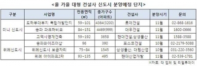 또 롯데건설과 대우건설, 현대건설 등은 오는 11월 서울 금천구 독산동, 송파구 문정동, 강동구 고덕동 등에서 3000가구 이상의 미니 신도시급 단지 분양에 나선다.
