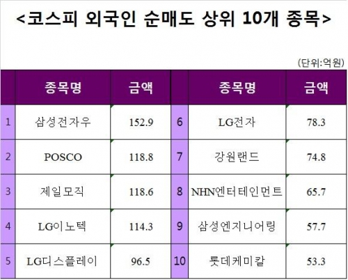 [코스피 외국인 순매도 상위 10개 종목]
