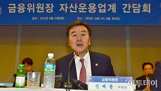신제윤 금융위원장이 24일 오후 서울 영등포구 국제금융센터 회의장에서 열린 ‘자산운용업계 간담회’에 참석해 인사말을 하고 있다. 방인권 기자 bink7119@
