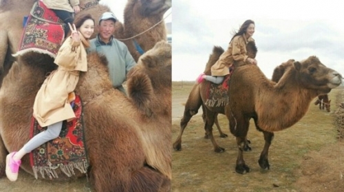 '강민경 낙타 인증샷' 속 강민경은 베이지 코트에 핑크색 운동화를 매치한 편안한 차림으로 낙타에 올라탄 채 포즈를 취하고 있다. 특히 몽골 현지인과 함께 사진을 찍거나 혼자 낙타 위에 올라가 겁난 듯한 표정을 짓고 있어 웃음을 자아낸다.