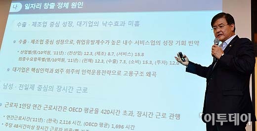서승환 국토교통부 장관이 26일 오전 서울 중구 웨스틴 조선호텔에서 열린 ‘21세기 기업 CEO를 위한 경총포럼’에서 경제살리기를 위한 국토교통정책 방향이란 주제로 강연을 하고 있다. 방인권 기자 bink7119@