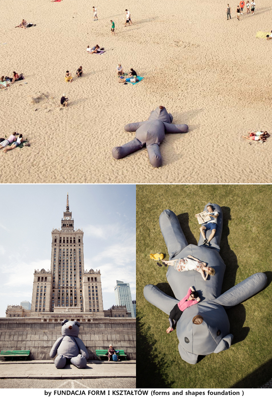 이 테디 베어는 폴란드의 한 예술가 단체가 만든 것으로 전해졌다. 공룡 크기의 곰 인형은 도심의 공원, 버스 정류장 등에 설치됐다.
