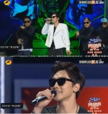 비는 27일 오후 방송된 중국 후난TV 오디션 프로그램 '콰이러난성(快樂男聲)' 결승전에 출연해 히트곡 '힙송'을 열창했다.