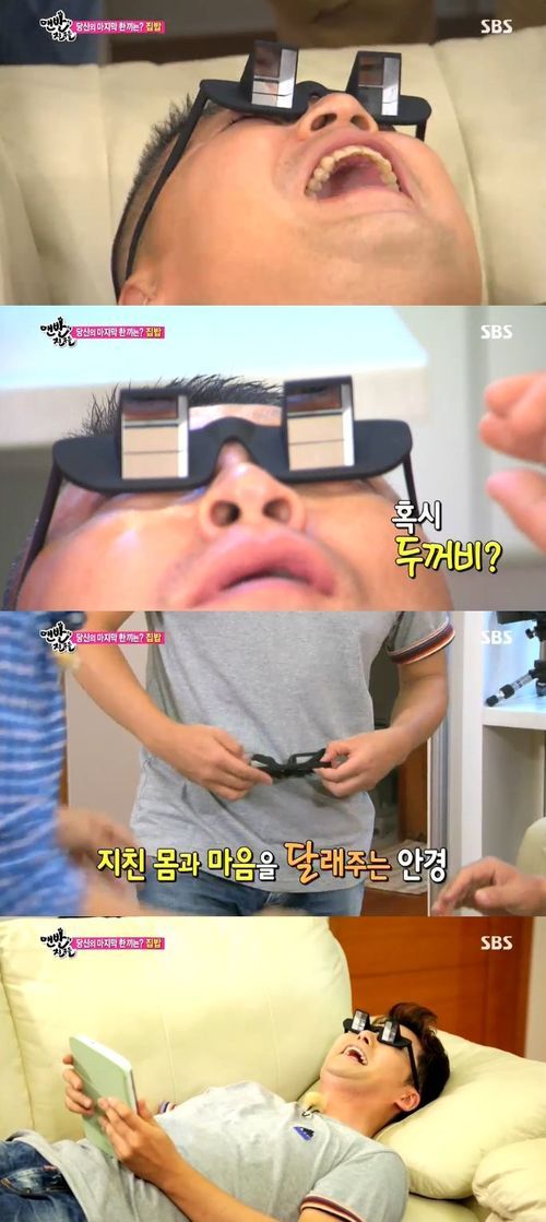 개그맨 강호동은 29일 오후 방송된 SBS '일요일이 좋다-맨발의 친구들'(이하 '맨친')에서 전현무의 집에 있는 TV 전용 안경을 직접 착용해 봤다.