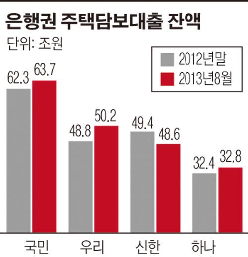 30일 금융권에 따르면 4대 시중은행(KB국민·우리·신한·하나)의 올해 8월 말 기준(195조3000억원) 주택담보대출 잔액은 지난해 말(192조9000억원)과 비교해 1조4000억원 증가했다.