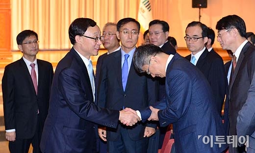 채동욱 검찰총장이 30일 오전 서울 서초동 대검찰청에서 열린 제 39대 검찰총장 퇴임식에서 직원들과 마지막 인사를 나누고 있다. 방인권 기자 bink7119@