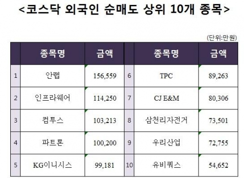 [코스닥 외국인 순매도 상위 10개 종목]