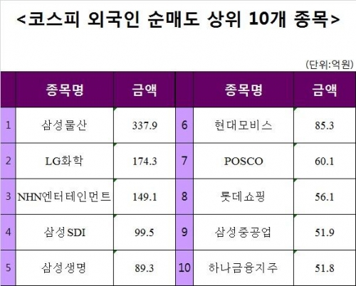 [코스피 외국인 순매도 상위 10개 종목]