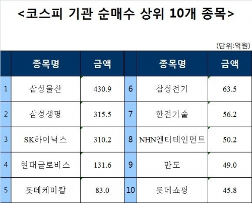 [코스피 기관 순매수 상위 10개 종목]