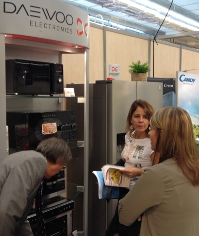 ▲프랑스의 한 매장에서 동부대우전자 ‘프라이어 오븐’을 살펴보고 있는 현지 소비자들. 사진제공 동부대우전자