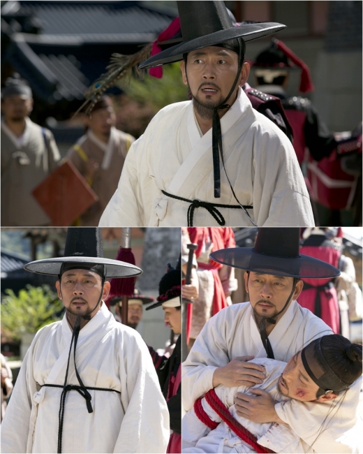 이런 가운데 7일 온라인 상에는 이강천이 참형 위기에 처한 이육도를 넋을 잃은 표정으로 안고 있는 사진이 공개돼 긴장감을 더하고 있다. 사진 속 이강천은 항상 흐트러짐 없는 모습을 보여온 것과 달리 갓이 비뚤어진 줄도 모른 채 하늘이 무너진 듯한 표정을 짓고 있다.