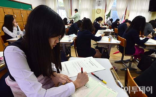 2014 대학수학능력시험을 30일 앞둔 8일 오전 서울 종로구 풍문여자고등학교 고3 수험생들이 올해 대학수학능력시험에 대비하기 위한 마지막 고3 전국연합학력평가를 치르고 있다. 방인권 기자 bink7119@
