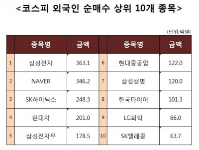 [코스피 외국인 순매수 상위 10개 종목]