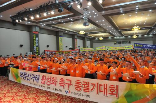 한국공인중개사협회(회장 이해광)는 8일 충북 제천 청풍리조트에서 협회 임원 및 회직자 450여명이 참석한 가운데 ‘부동산거래활성화 촉구 총궐기대회’를 개최했다고 밝혔다.