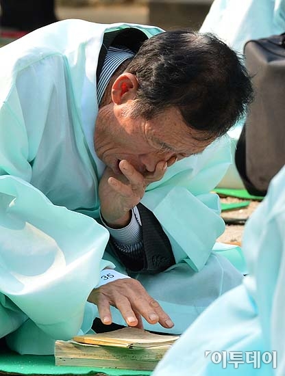 과거제 재현행사는 주어진 시제에 따른 과문작성(답안지 작성)을 원칙으로 조선시대 과거제 중의 하나인 문과전시의(文科殿試儀) 원형에 따라 실시된다. 방인권 기자 bink7119@