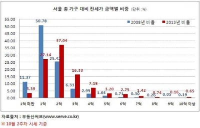 2008년 62.15% → 2013년 30.53%…3억 이상 전세 비중 20%↑