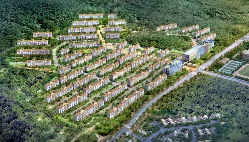 지하1층~지상4층 46개동 규모에 전용면적 59㎡ 270가구, 74㎡ 224가구, 84㎡ 207가구 등 총 701가구로 구성됐다. 제주영어교육도시 공동주택 중 가장 큰 규모다.